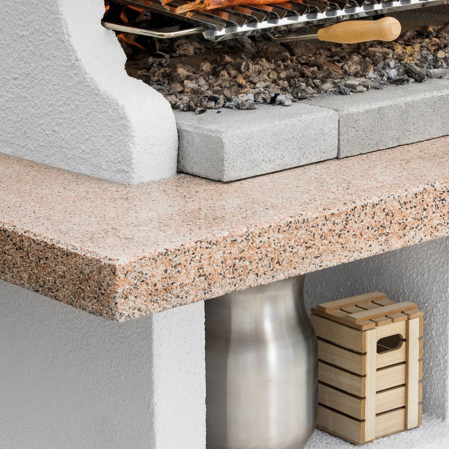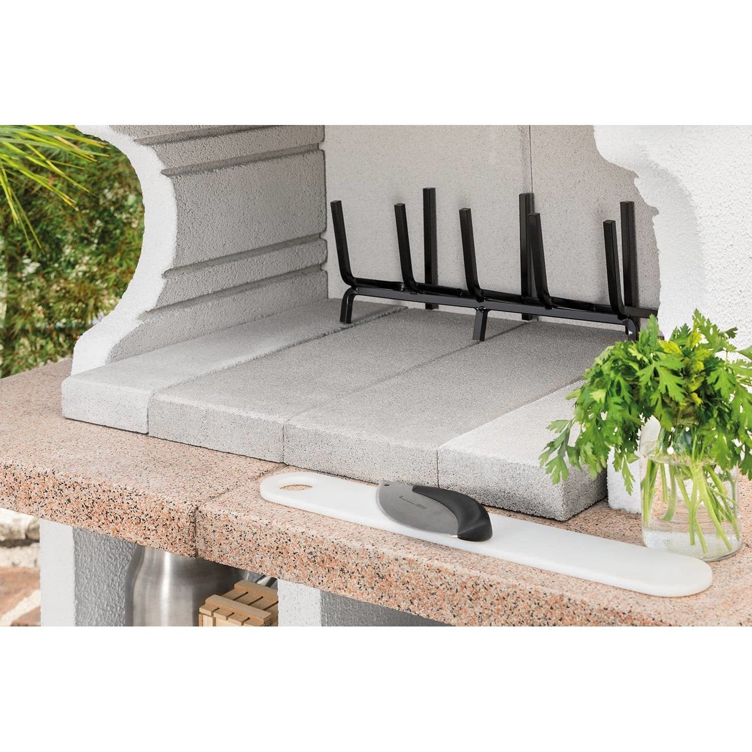 La struttura è realizzata in conglomerato cementizio, pronta per essere tinteggiata nel colore che preferisci per personalizzare ulteriormente il tuo barbecue.