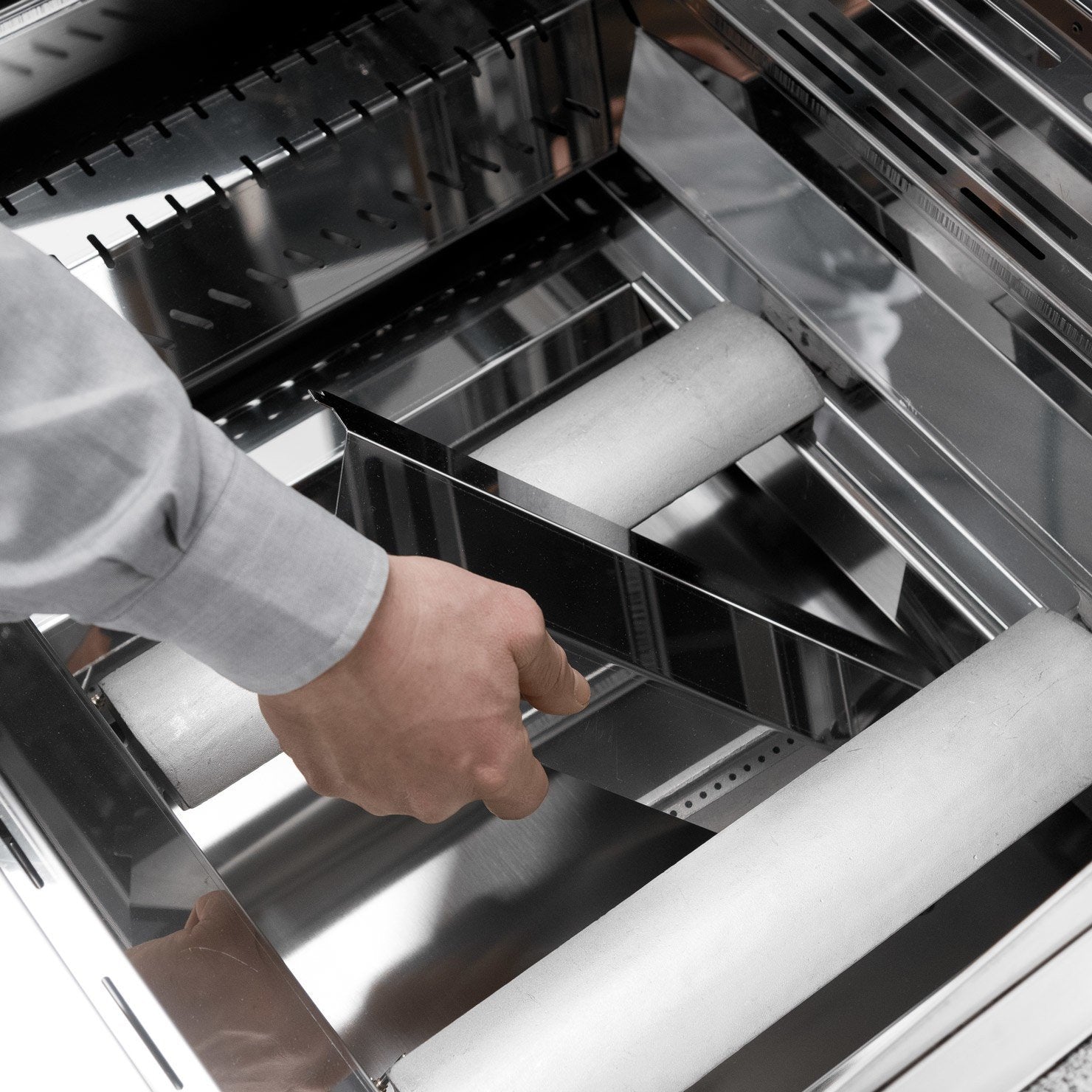 È possibile aggiungere un coperchio inox per cottura come optional, che fornisce una copertura completa per una cottura a calore indiretto o per mantenere caldi gli alimenti.