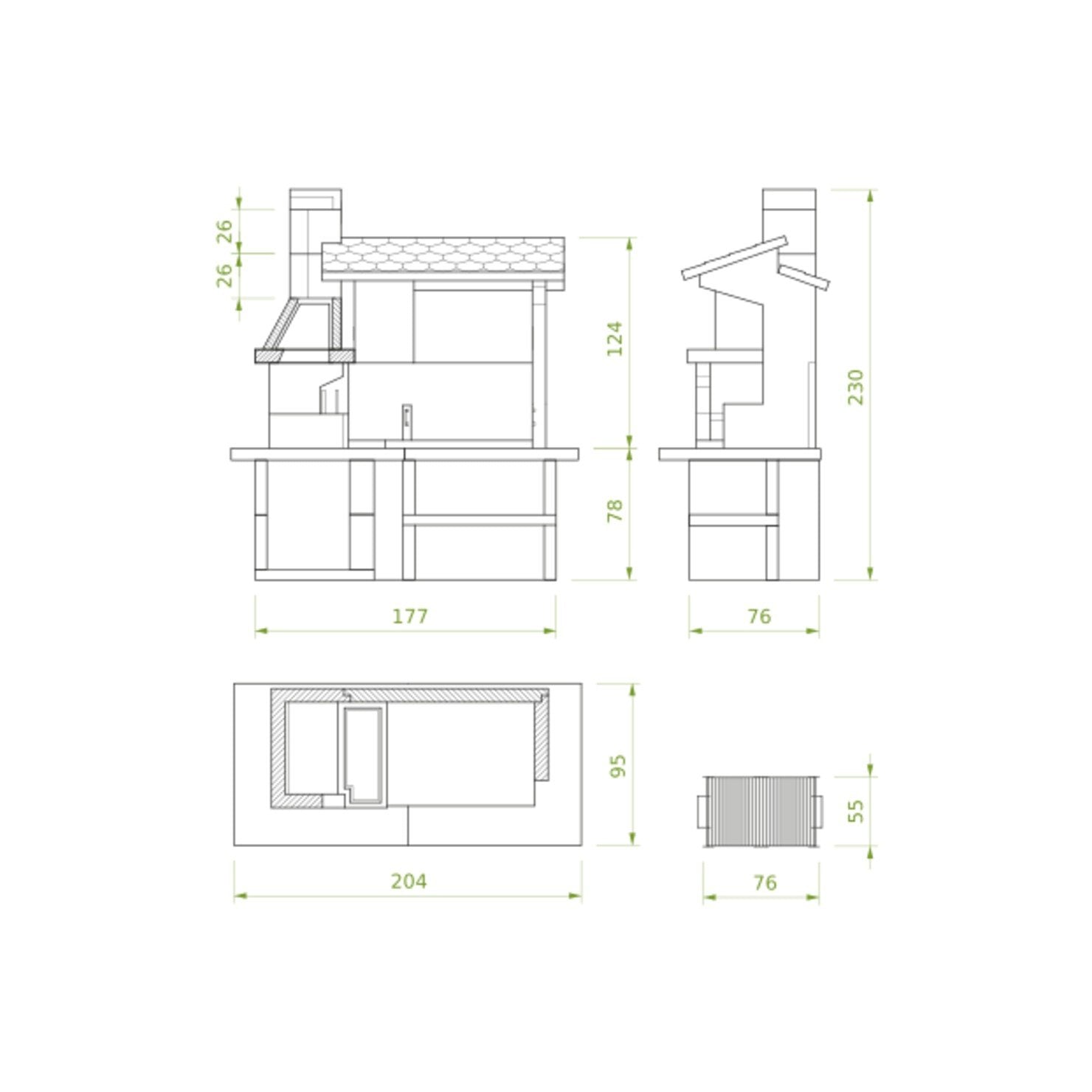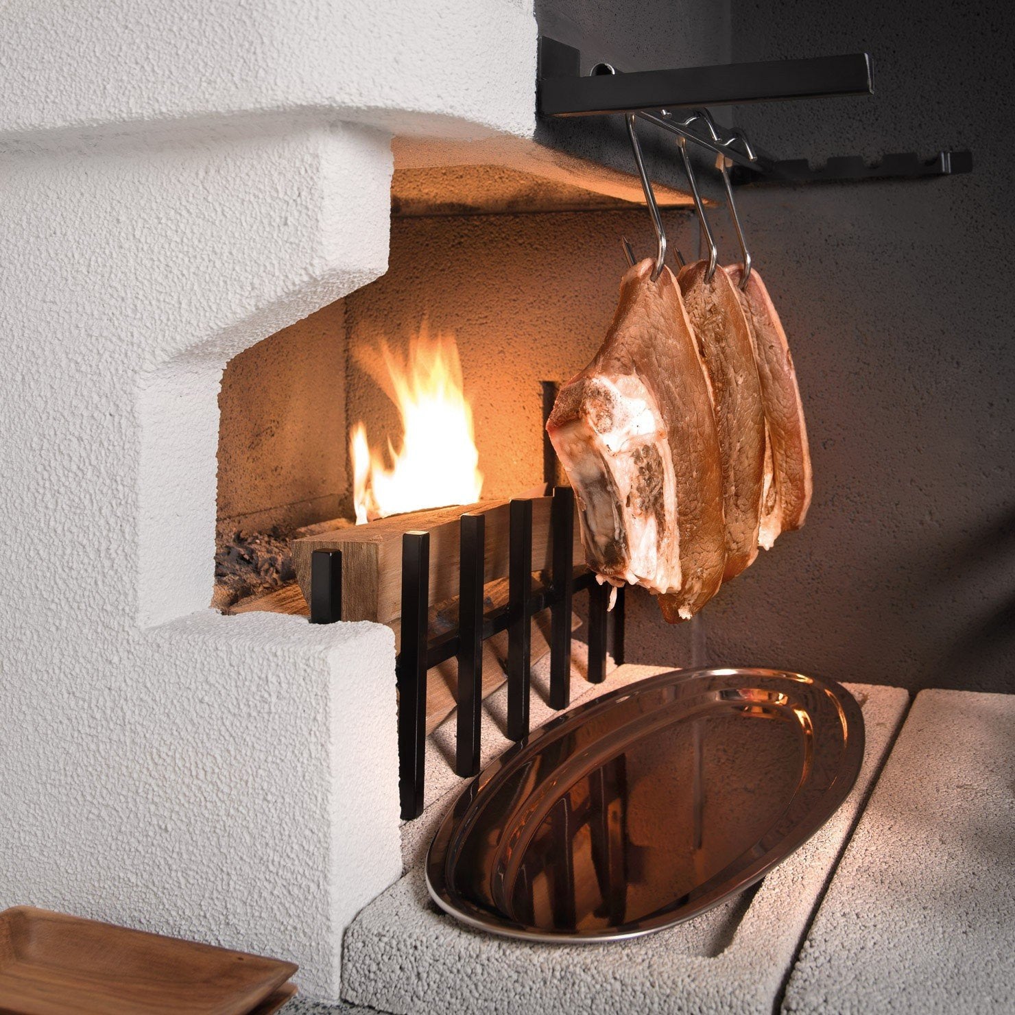 Il focolare con braciere laterale facilita le operazioni di cottura e caricamento della legna, consentendo l'uso completo dell'area grill. È integrato anche un portalegna per una maggiore comodità.