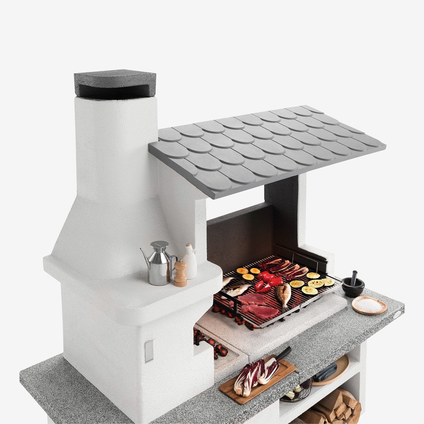 La struttura del barbecue è realizzata in conglomerato cementizio, da tinteggiare a tuo piacimento.