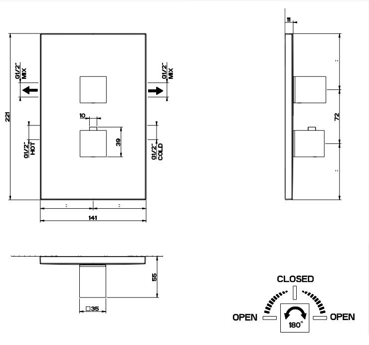 Con il miscelatore termostatico doccia a parete 2 vie della linea Rettangolo di Gessi, potrete godere di una doccia confortevole e personalizzata, controllando facilmente la temperatura e il flusso dell'acqua per un'esperienza di doccia rilassante e piacevole.