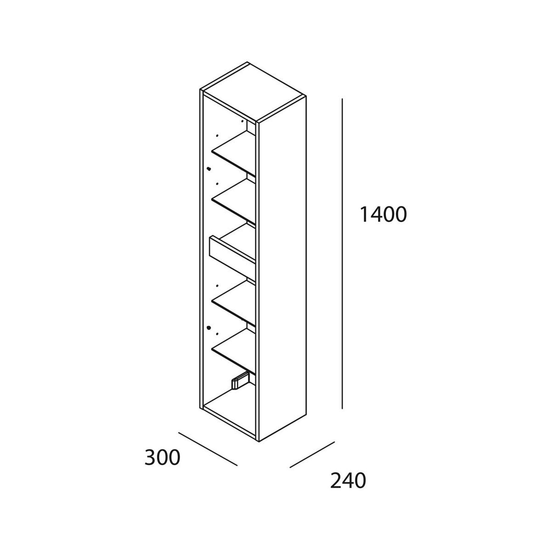 - Dimensioni: Con una altezza di 140 cm, una larghezza di 30 cm e una profondità di 24 cm, il pensile offre un ampio spazio per organizzare i tuoi oggetti da bagno senza occupare troppo spazio.