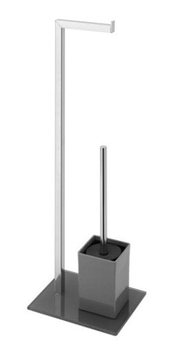 Aggiungi un tocco di eleganza e ordine al tuo bagno con questa piantana porta rotolo e porta scopino in acciaio cromato, caratterizzata da una base in vetro temperato grigio. Ecco perché questa soluzione di archiviazione è perfetta per il tuo bagno: