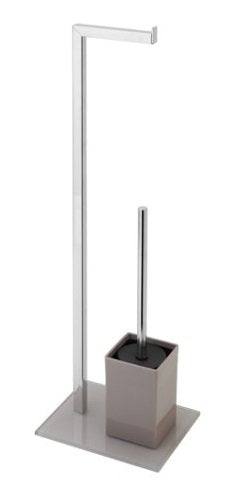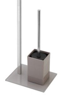 Piantana portarotolo porta scopino tortora e acciaio cromato con base in vetro
