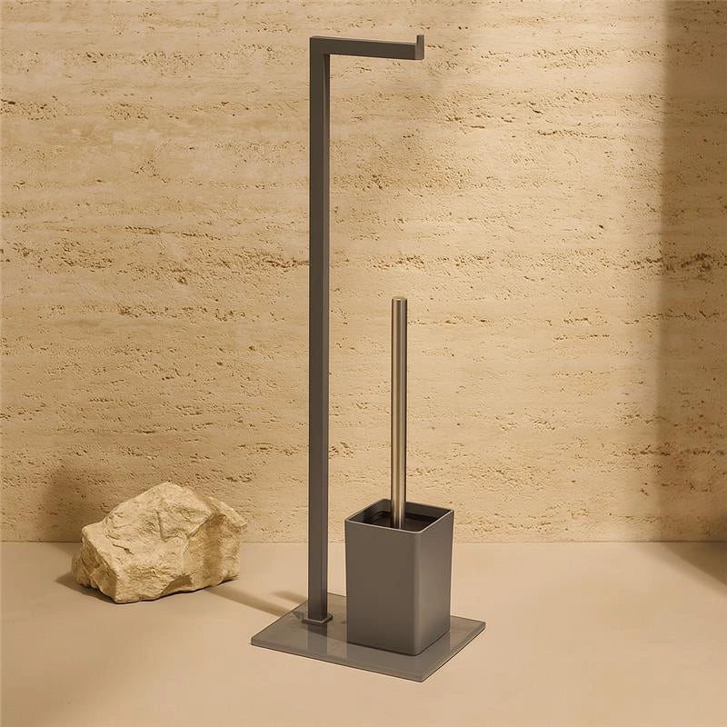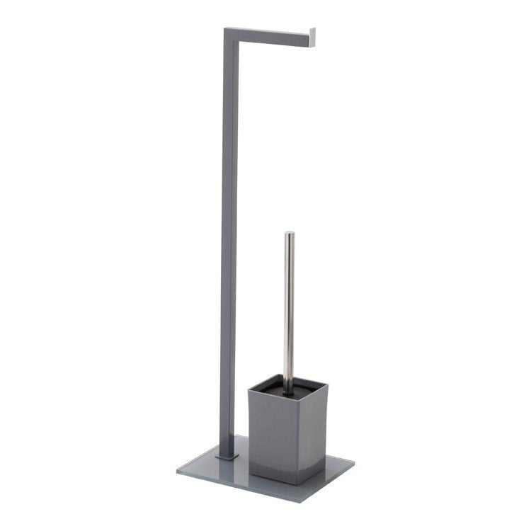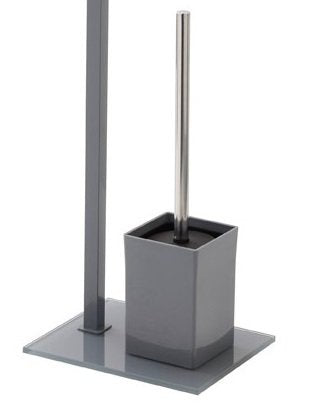Piantana portarotolo e portascopino in acciaio con base in vetro grigio