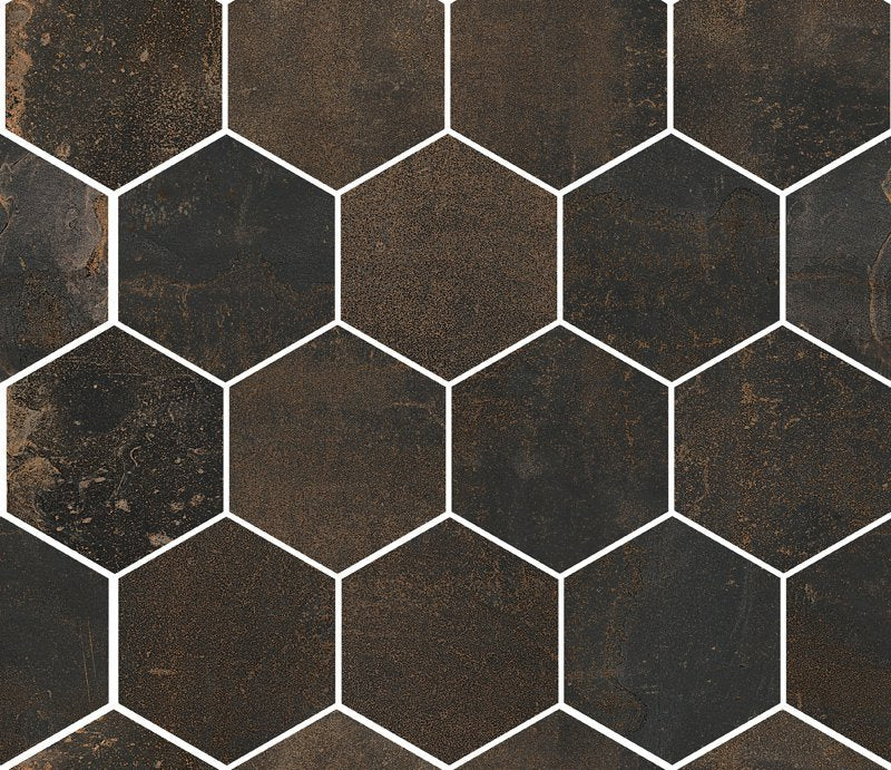 Piastrella Esagonale 26x30 Cm Effetto Metallo In Gres Porcellanto Black Ceramica Sant Agostino Hexagon Oxidart CSAHOXBL26