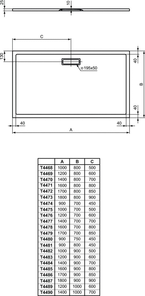 Piatto Doccia 160x80 Rettangolare 25 mm Filo e Sopra Pavimento e Su Rialzo In Acrilico Bianco Ultraflat New T447101 Ideal Standard