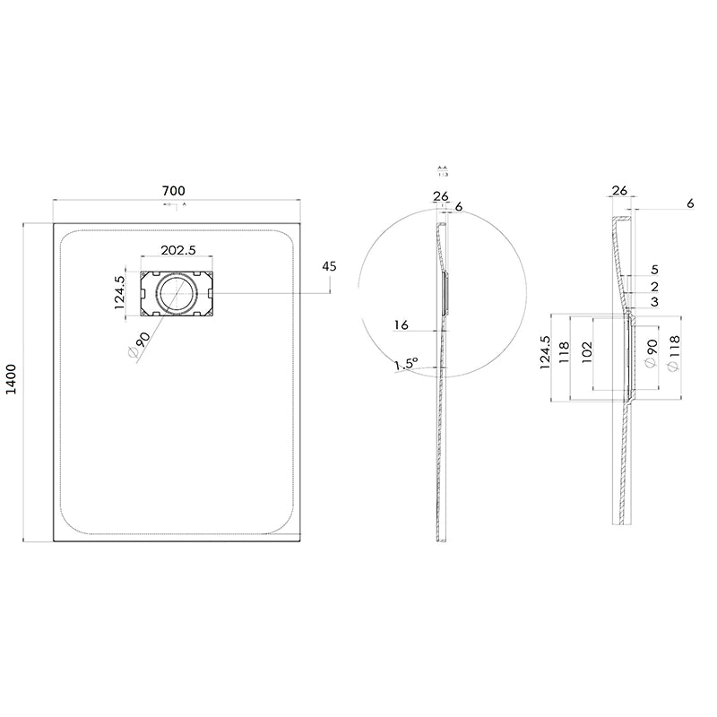 Piatto doccia 140X70 antiscivolo antibatterico leggero e facile da tagliare per installazione su masseto o filo pavimento