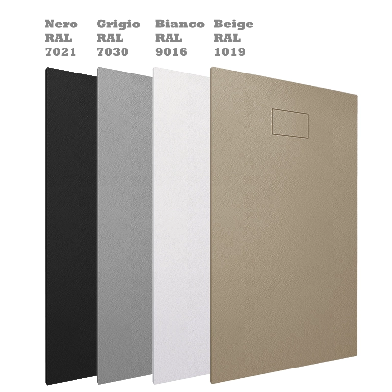 Il piatto doccia Quarzo 160X80 è un classico di design moderno con finitura in pietra effetto ardesia beige RAL 1019.