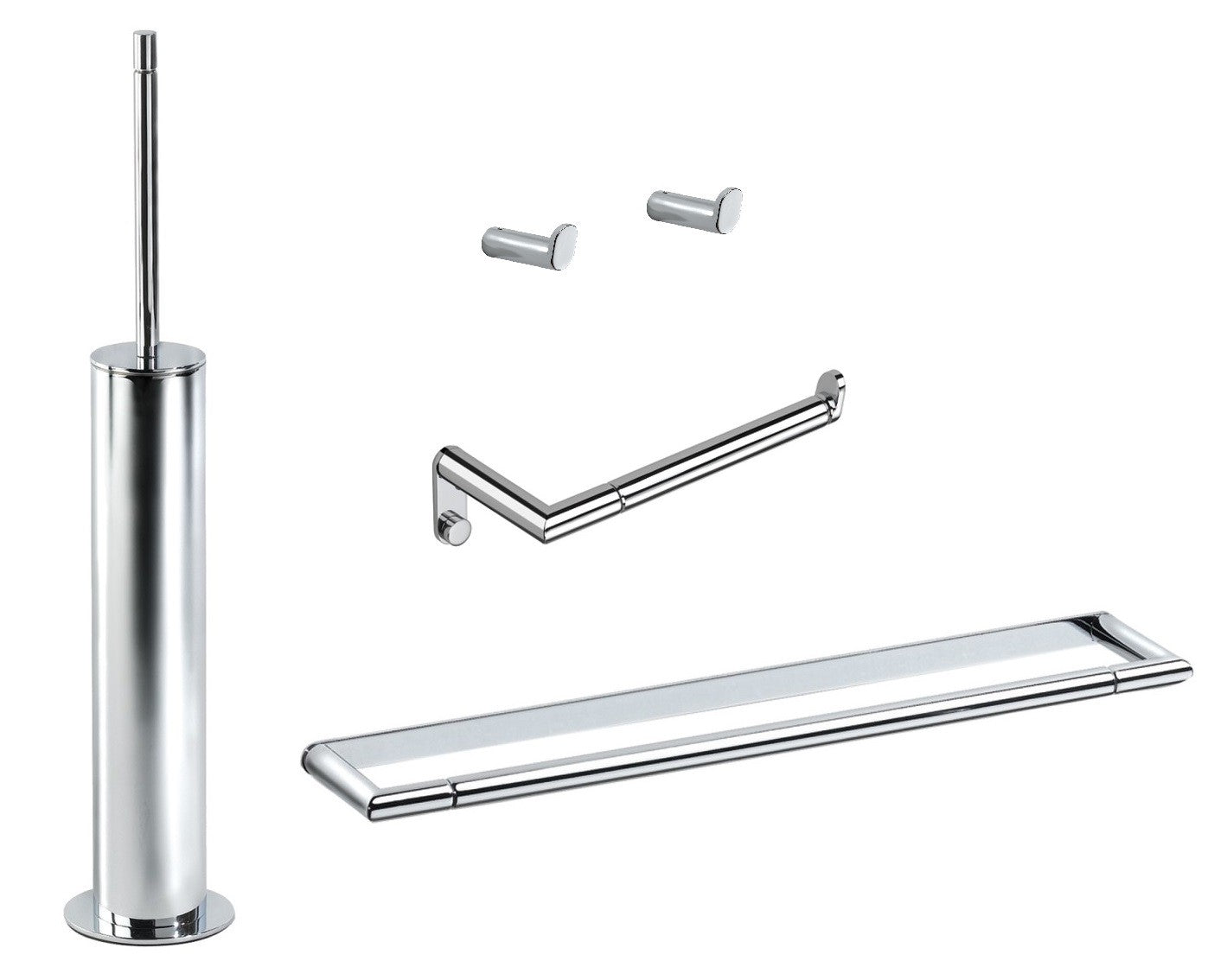 Pomd'or Micra Set Accessori bagno Portasalviette 40 cm Portarotolo destro Portascopino a terra e 2 appendini cromo lucido