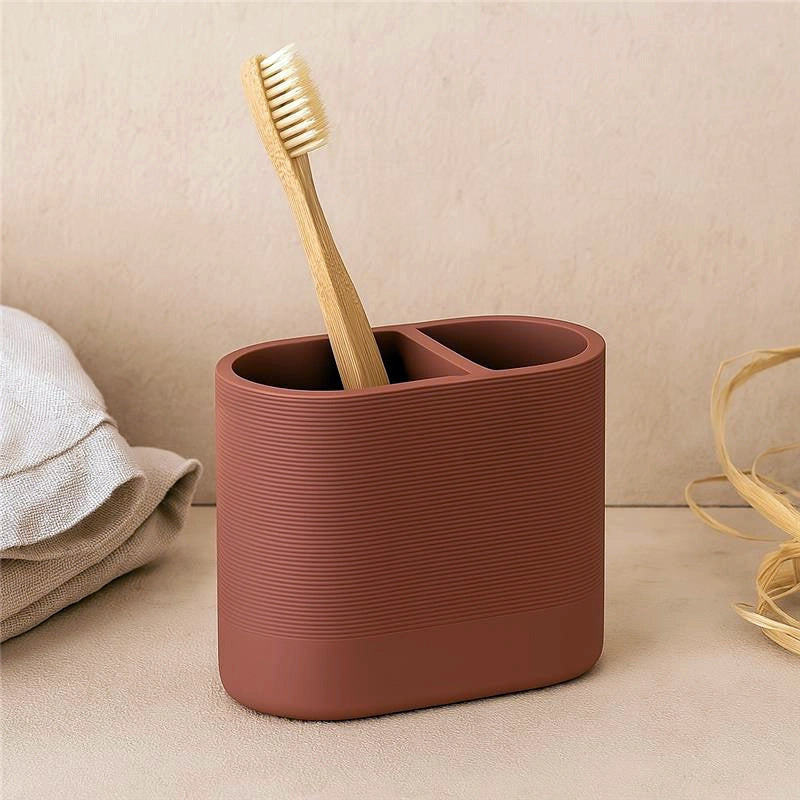 L'effetto terracotta si abbina armoniosamente agli altri accessori della linea Marika o a elementi naturali come legno e pietra, creando un’atmosfera accogliente e sofisticata. Ideale per chi cerca un porta spazzolini elegante, resistente e funzionale, in grado di unire design e praticità in un unico complemento d’arredo.