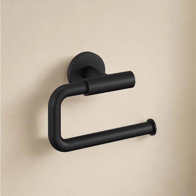 Realizzato in acciaio con finitura Soft Black, il portarotolo presenta una superficie resistente e dal look sofisticato. Il design senza coperchio consente un accesso facile e veloce al rotolo, mantenendo un aspetto pulito e minimalista.