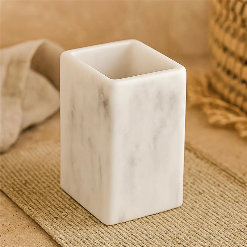 Portaspazzolini in poliresina marmorizzato bianco Marmo