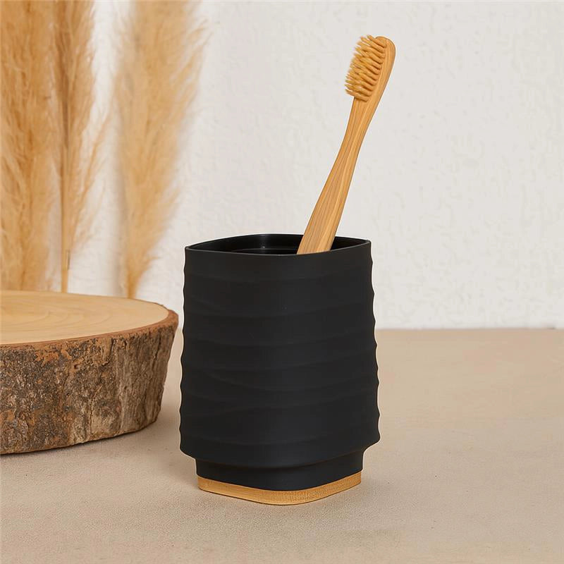 Portaspazzolino in plastica ABS e bamboo nero Alabama