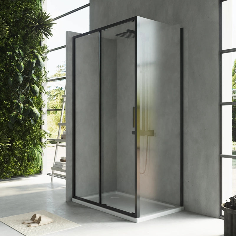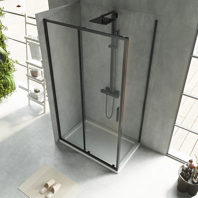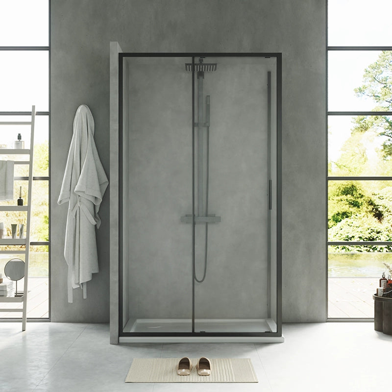 Box doccia 100x70 Rio un anta scorrevole vetro 6 mm trasparente H 195 nero