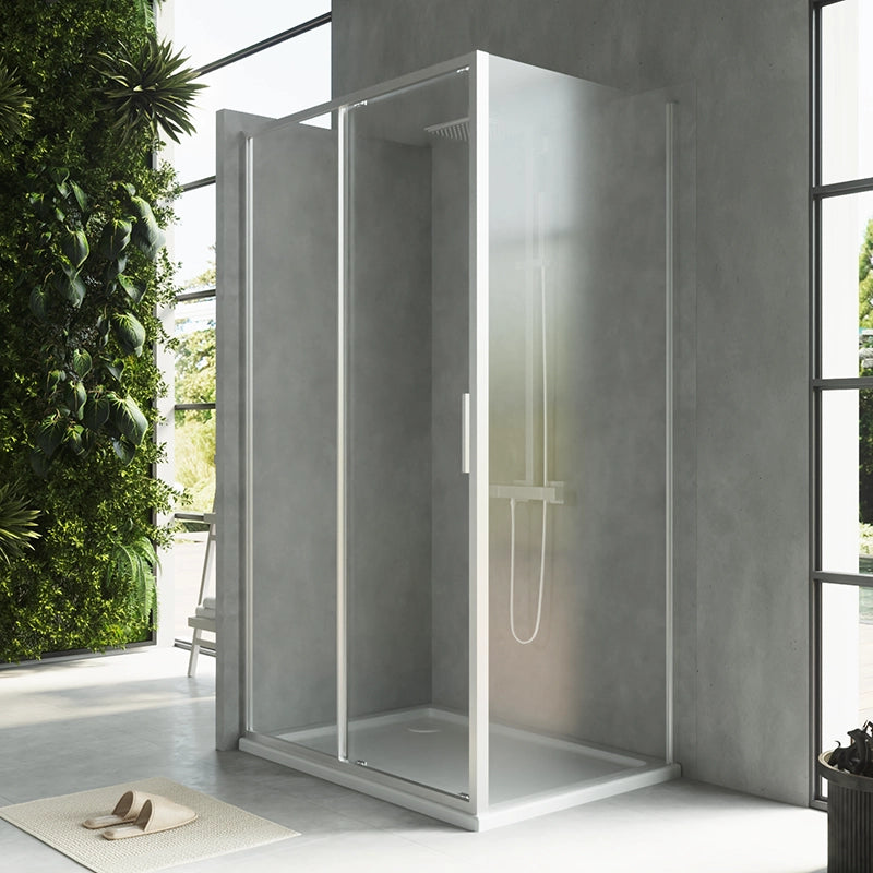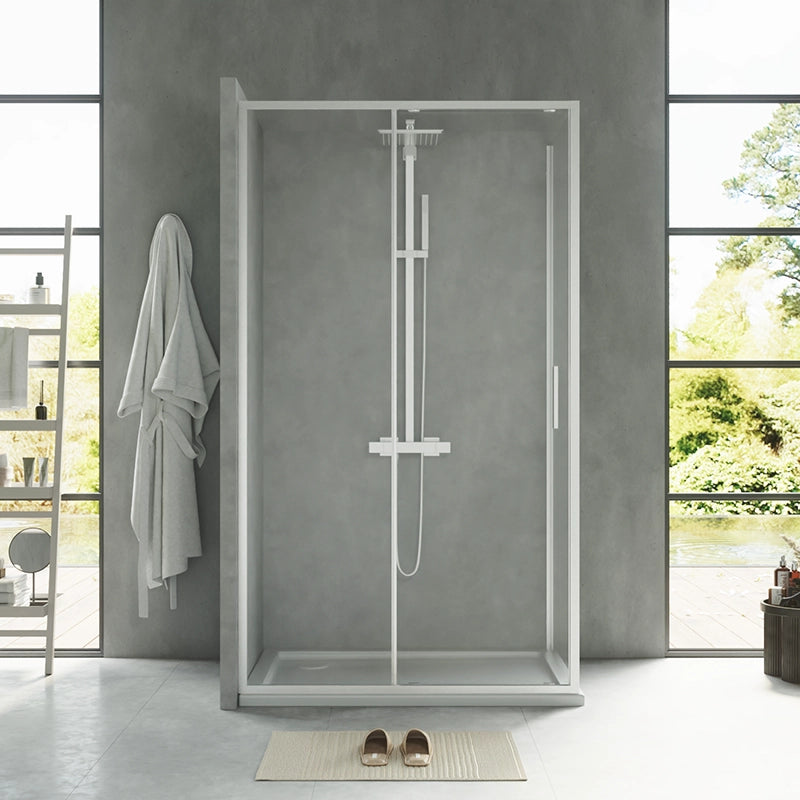 Grazie alla reversibilità e all'estensibilità del profilo di 1,5 cm, la doccia Rio si adatta facilmente a pareti fuori squadro, offrendo una flessibilità di installazione ideale per ristrutturazioni e nuove costruzioni.
