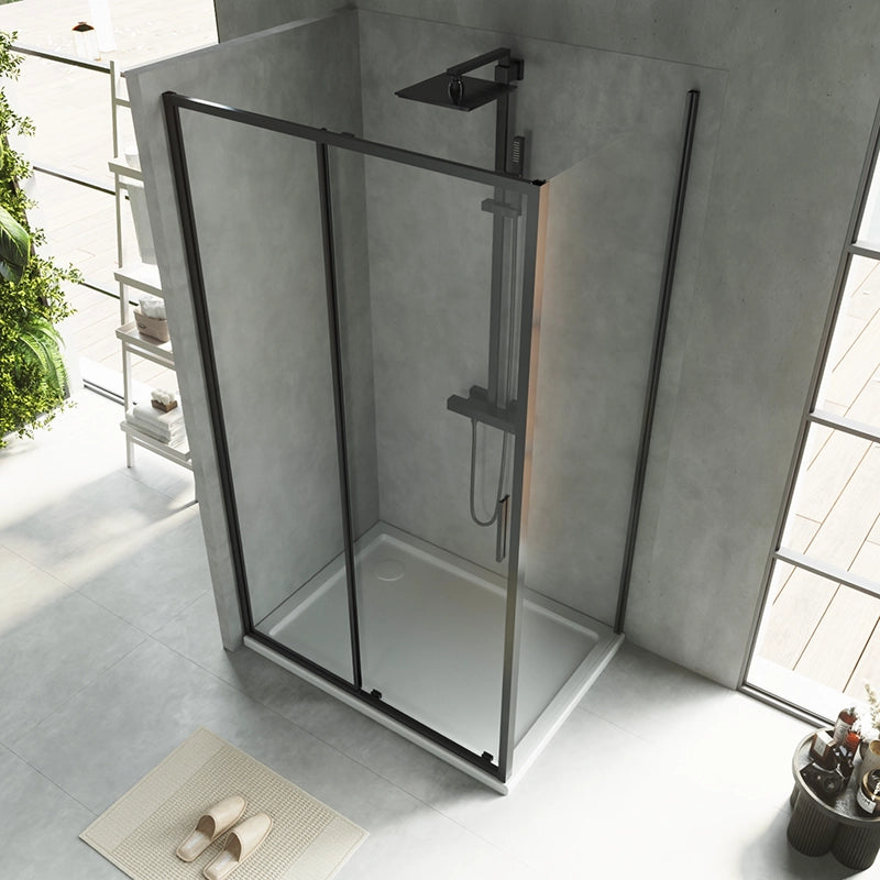 Box doccia 120x80 Rio un anta scorrevole vetro 6 mm trasparente H 195 nero