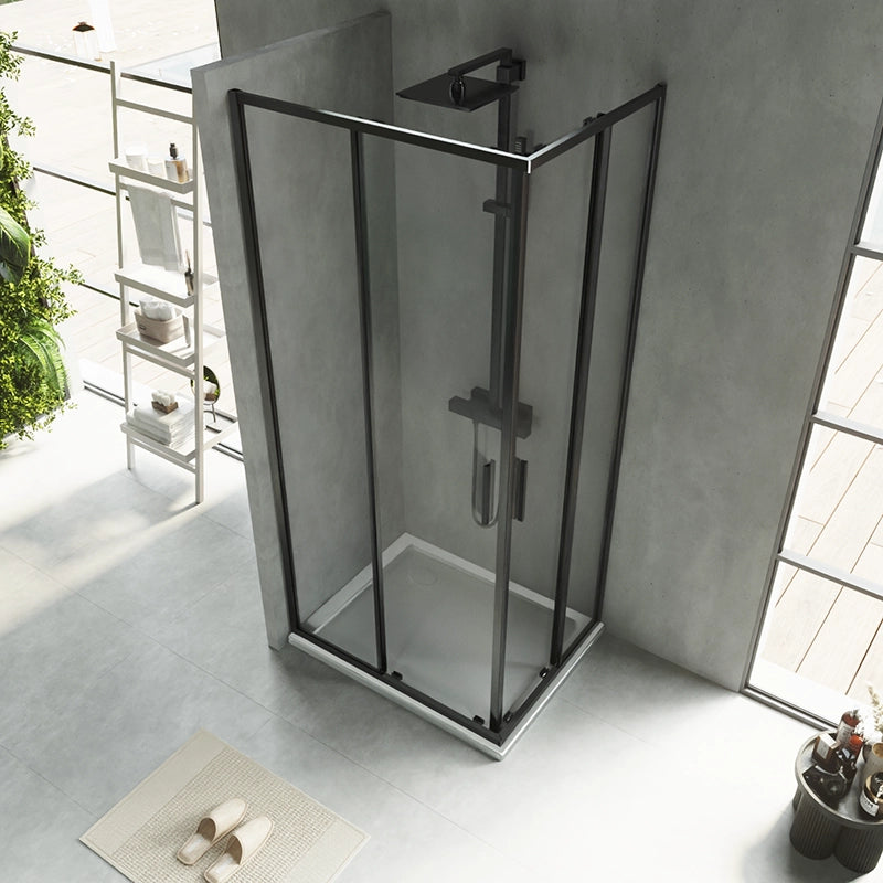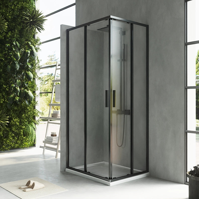 Box doccia 70x90 Rio doppio scorrevole vetro 6 mm trasparente H 195 nero