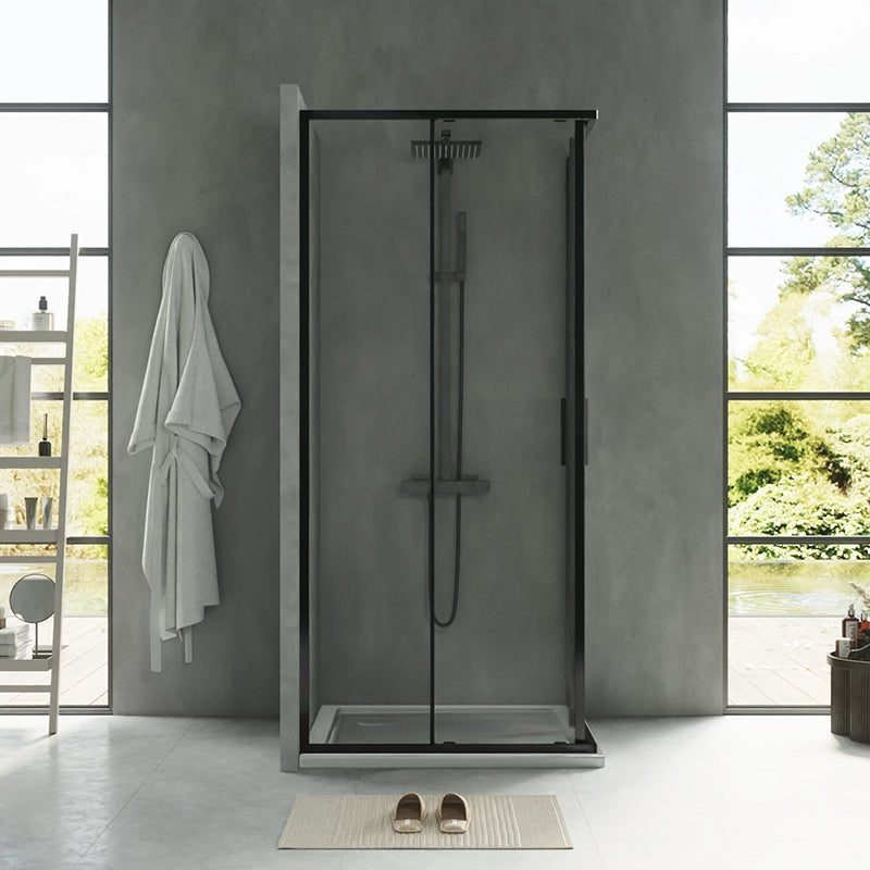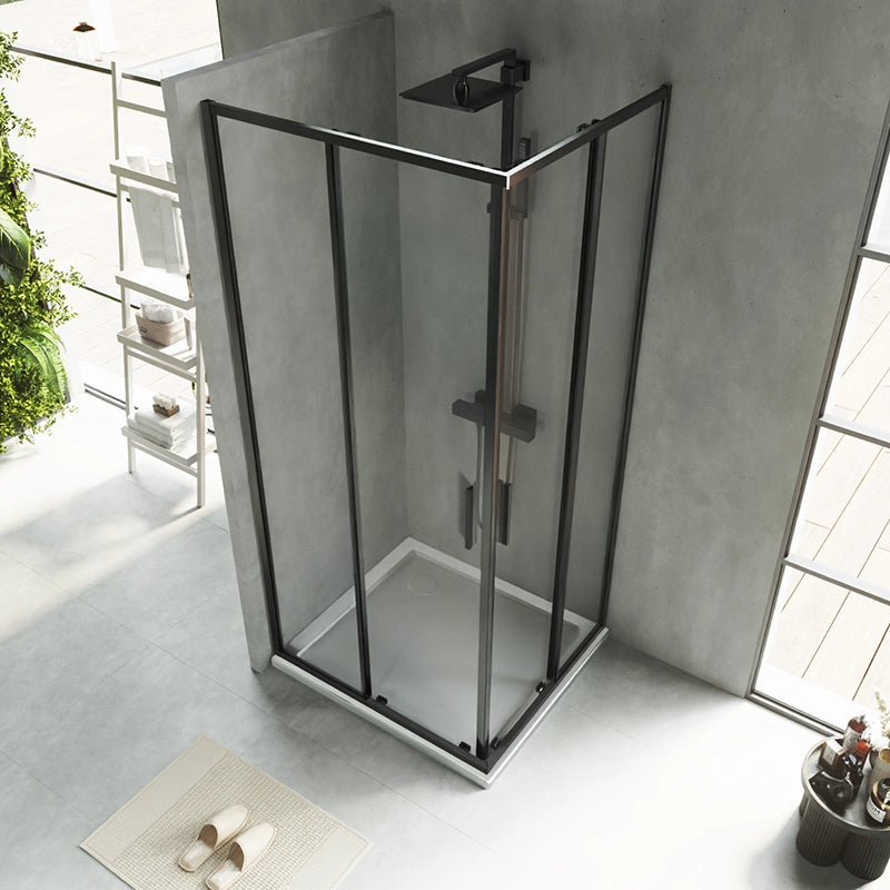 Box doccia 80x90 Rio doppio scorrevole vetro 6 mm trasparente H 195 nero