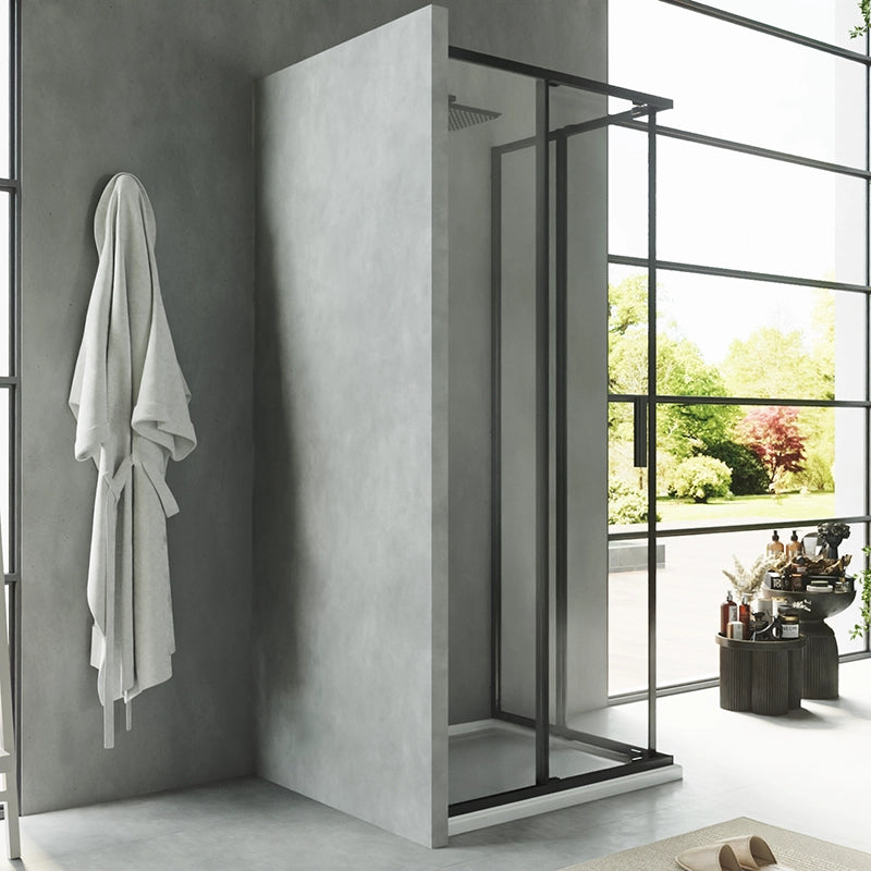 Realizzata con vetro temperato trasparente da 6 mm, alto 195 cm, dona luminosità all’ambiente e un senso di maggiore ampiezza.
