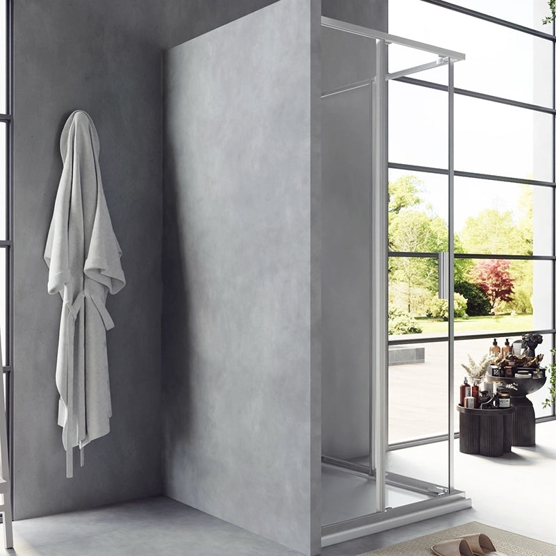Grazie alla reversibilità e all'estensibilità del profilo di 1,5 cm, la doccia Rio si adatta facilmente a pareti fuori squadro, offrendo una flessibilità di installazione ideale per ristrutturazioni e nuove costruzioni.