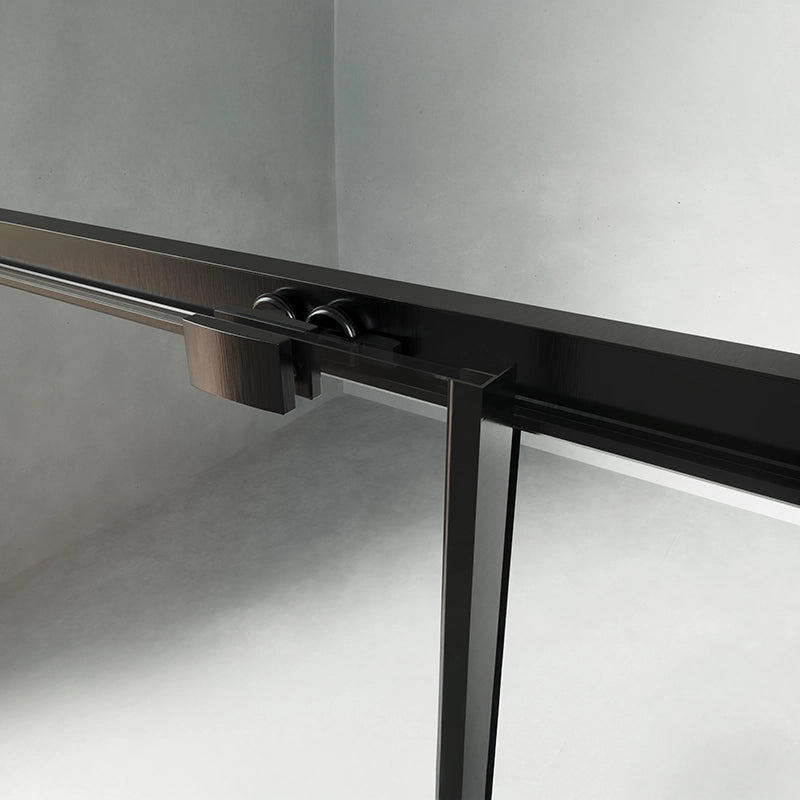 Realizzata con vetro temperato trasparente da 6 mm, alto 195 cm, dona luminosità all’ambiente e un senso di maggiore ampiezza.