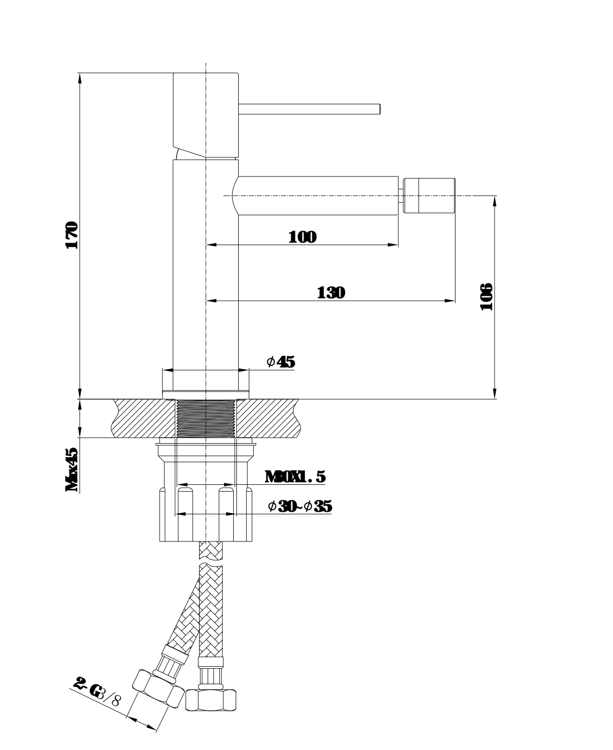 Rubinetto Bidet Monocomando Nero Opaco con Flessibili – Modello Hidden