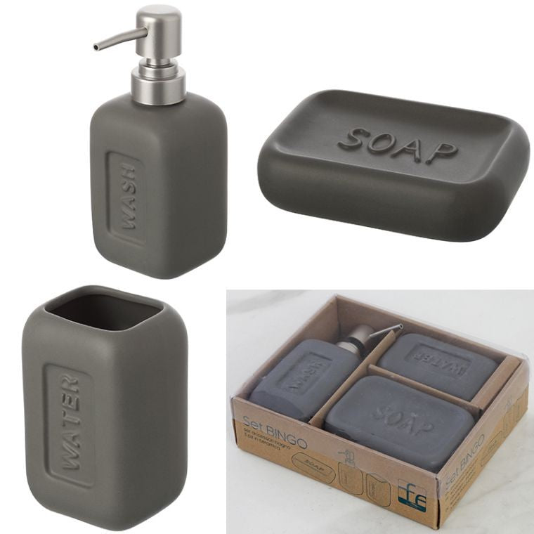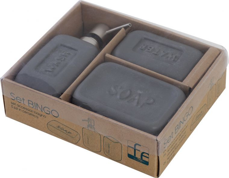 Set accessori bagno 3 pz in Ceramica grigio Bingo