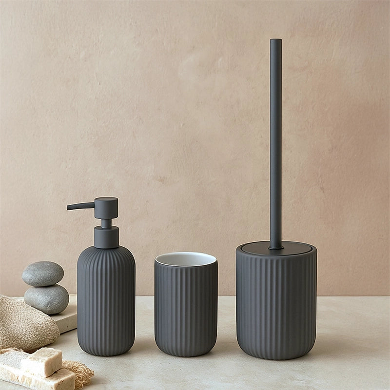 Set Portaspazzolini, Dispenser Sapone e Portascopino in Ceramica Grigio Color: Eleganza e Qualità Superiore