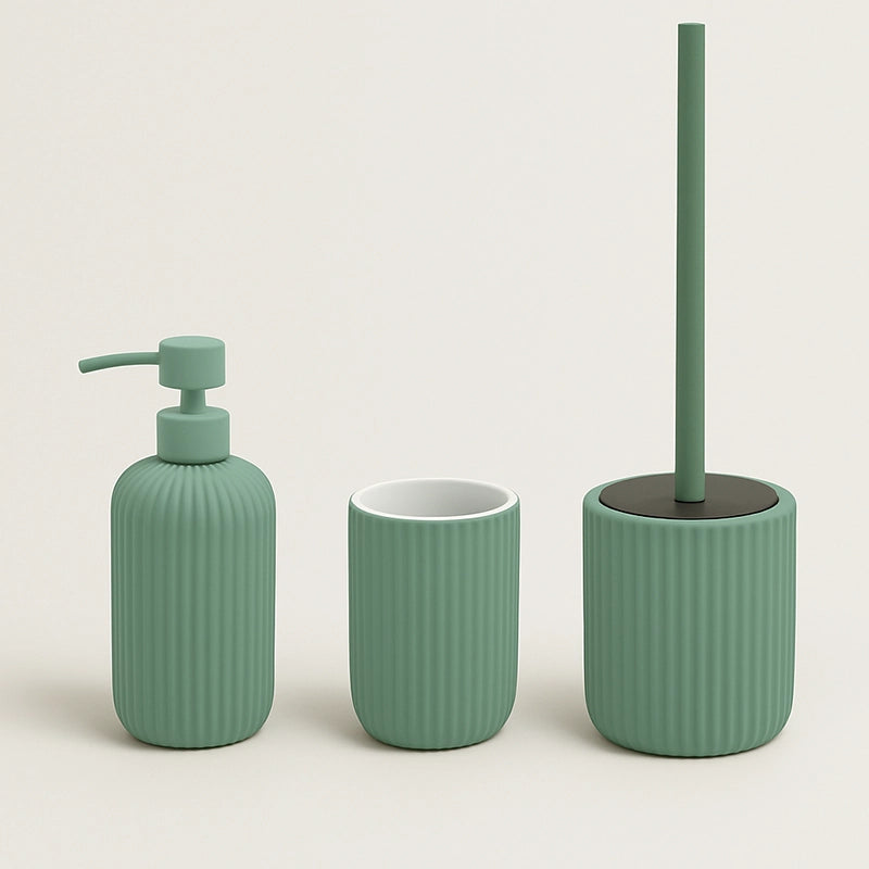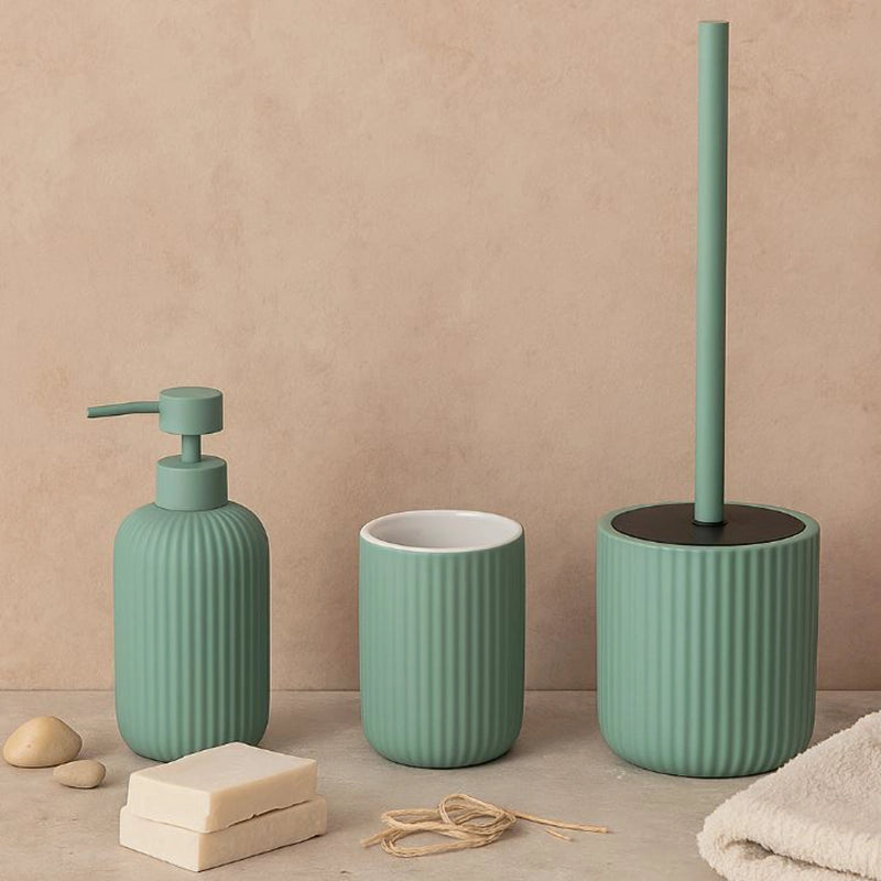 Set Portaspazzolini, Dispenser Sapone e Portascopino in Ceramica Verde Color: Raffinatezza Naturale
