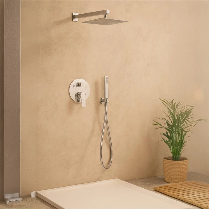 Miscelatore ad Incasso 2 Vie: Il miscelatore a 2 vie ad incasso offre la flessibilità di scegliere tra il soffione a pioggia e la doccetta con facilità. Il suo design a incasso conferisce un aspetto pulito e contemporaneo al tuo bagno.