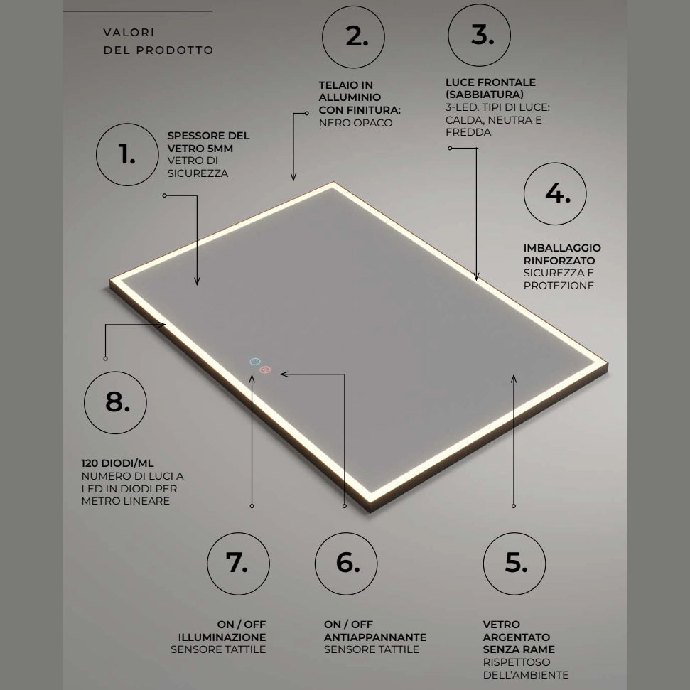 Specchio Siena con Luce Frontale: Design Contemporaneo e Comfort Tecnologico