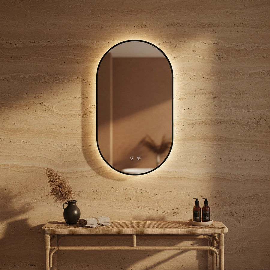 Perfetto per bagni di design e spazi contract, lo specchio ellittico nero opaco unisce funzionalità, estetica e innovazione. È più di un complemento d’arredo: è un gioiello luminoso che trasforma la tua quotidianità in un’esperienza di puro comfort e stile.