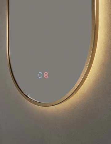 Lo specchio ellittico retroilluminato Pisa con pre-cornice in alluminio oro spazzolato è la scelta perfetta per chi desidera un arredo bagno dal carattere sofisticato e contemporaneo. Le linee morbide e la finitura metallica donano all’ambiente un’eleganza senza tempo, creando un punto luce scenografico capace di impreziosire qualsiasi stile d’arredo, dal minimalista al moderno chic.