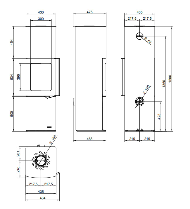 • Diametro uscita fumiø 15 cm