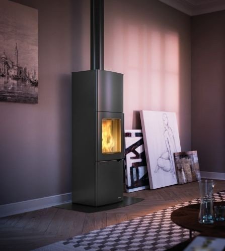 Stufa A Legna 8kw Ventilata Canalizzabile con telecomando Acciaio Antracite Palazzetti Eva S 805300600