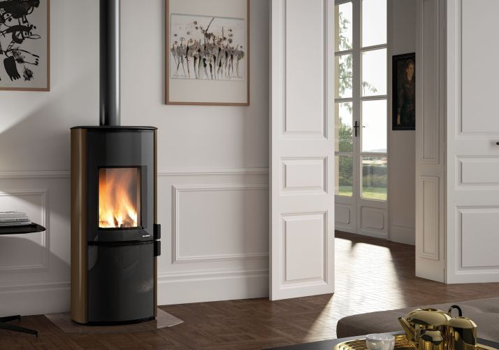Stufa a Legna ad aria 8 kw con porta verticale top in ceramica e acciaio Moka Palazzetti Sofia 805301310