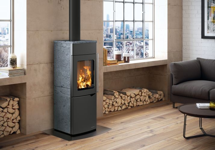Stufa A Legna ad aria 8kw con porta verticale automatica in Pietra Ollare Palazzetti Eva S