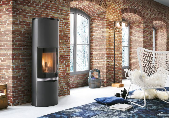 Stufa A Legna con accumulo aria focolare Magnofix After Flame in acciaio Nero Palazzetti Erica