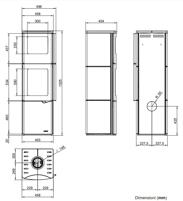 - Focolare in Thermofix®: massimizza l’efficienza della combustione e del riscaldamento.
