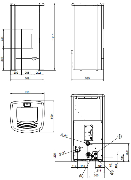 Ha un rivestimento in acciaio verniciato, un top in ghisa e una porta in vetro curvo. La struttura è robusta e presenta un braciere in ghisa di alto spessore. Il vetro ceramico è dotato di un sistema di pulizia per garantire una facile manutenzione.