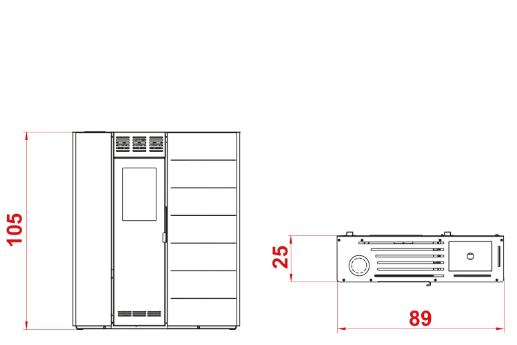 • unico sportello frontale per accesso al focolare e al cassetto cenere