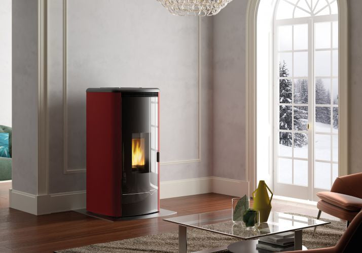 Stufa A Pellet Ventilata ad acqua con top in ghisa e acciaio rosso Palazzetti Maida Idro 18t