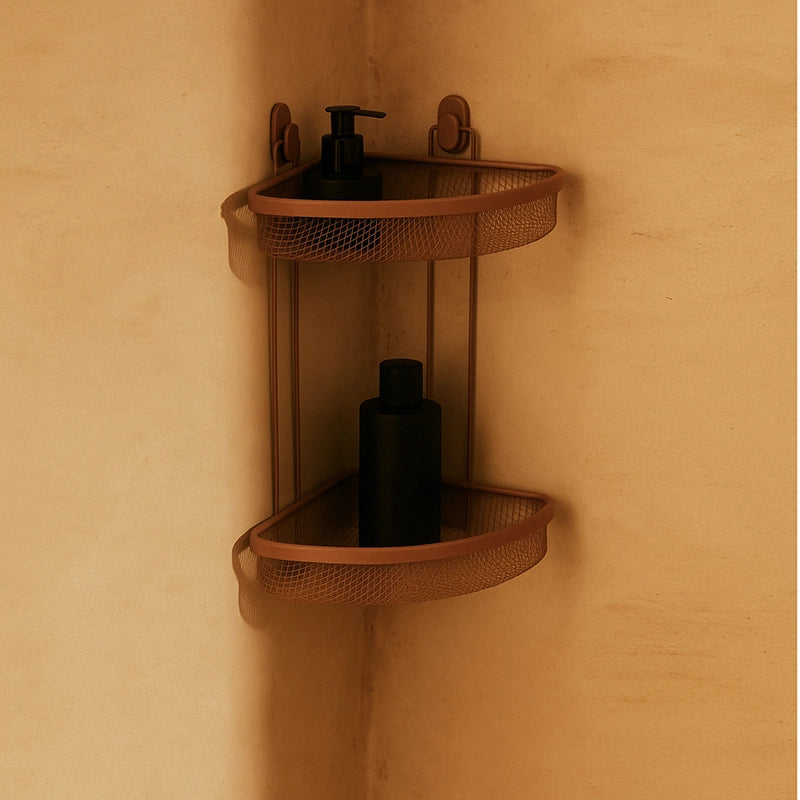Elegante, compatta e funzionale, la mensola doccia angolare 2 ripiani in acciaio mocha è l’accessorio ideale per mantenere sempre in ordine shampoo, detergenti e accessori da bagno, aggiungendo al contempo un tocco raffinato all’ambiente.
