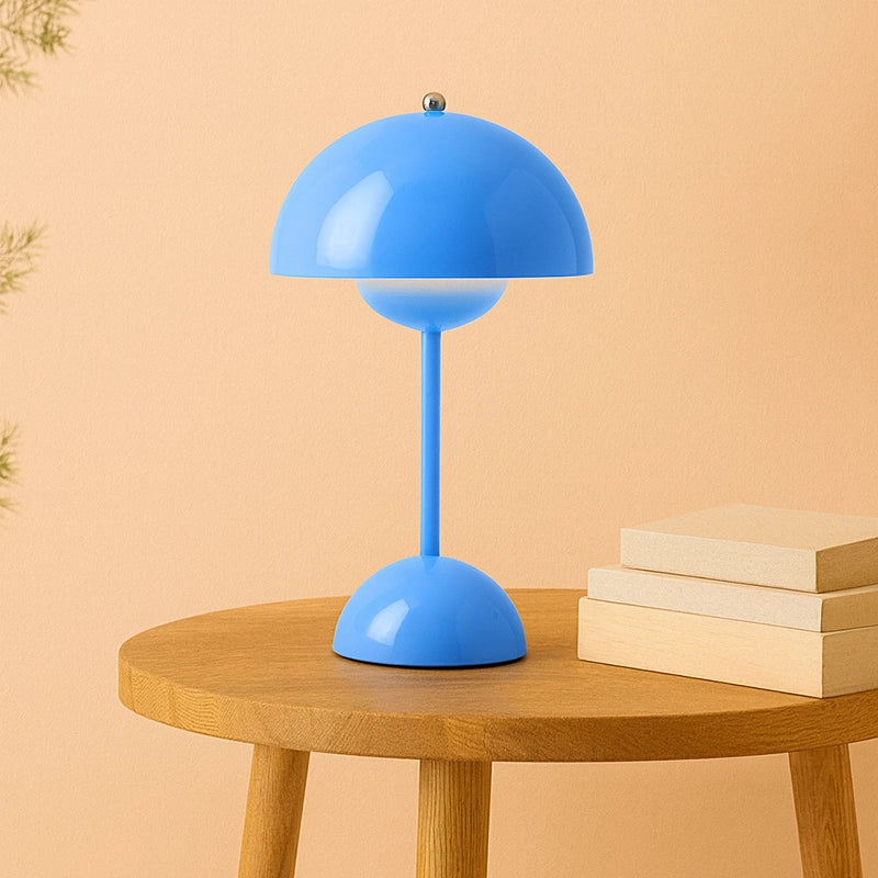 Flowerpot VP9 è una lampada da tavolo piccola e leggera con la particolare forma del portalampada a semi-cupola che ricalca il design di Verner Panton. Prodotta in una vasta gamma di colori vivaci e contemporanei la lampada VP9 si ricarica facilmente con un semplice cavo USB incluso.