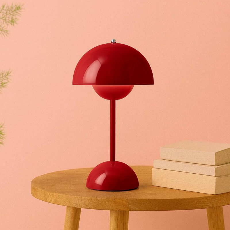 Flowerpot VP9 è una lampada da tavolo piccola e leggera con la particolare forma del portalampada a semi-cupola che ricalca il design di Verner Panton. Prodotta in una vasta gamma di colori vivaci e contemporanei la lampada VP9 si ricarica facilmente con un semplice cavo USB incluso.