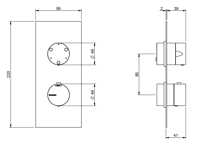 Il Treemme 3.6 è un miscelatore doccia termostatico con deviatore a 3 uscite senza parte di incasso. È progettato per offrire un controllo preciso della temperatura e del flusso dell'acqua durante la doccia.