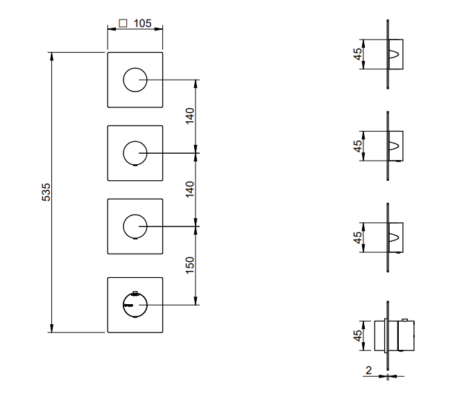 Il Treemme 3.6 rwit2575is01 è un miscelatore doccia termostatico a muro con 3 uscite, senza parte di incasso, realizzato in acciaio inossidabile satinato.