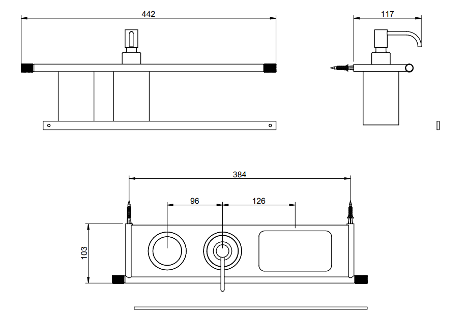 Treemme 5mm IT8373ISZZZZ mensola portaoggetti con dispenser sapone e portaspazzolini integrato bianco inox satinato