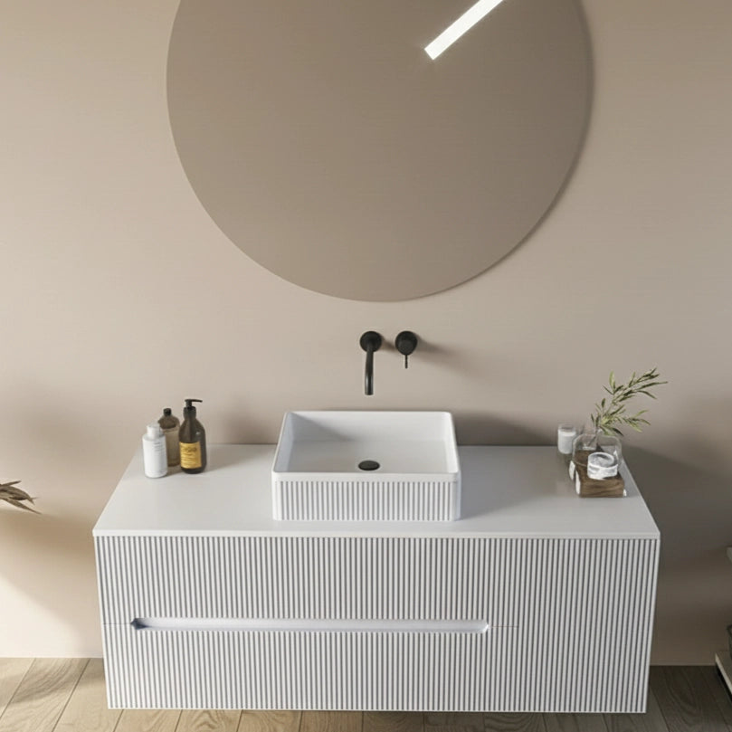 Il mobile bagno Urbino è progettato per chi ama il design originale e desidera arredare con stile e qualità superiore. La tonalità bianco opaco e l'inconfondibile finitura cannettata lo rendono una soluzione ideale per bagni dal gusto contemporaneo e ricercato.
